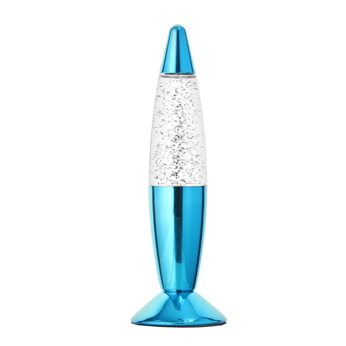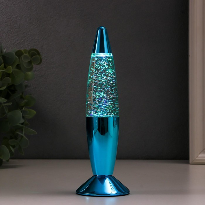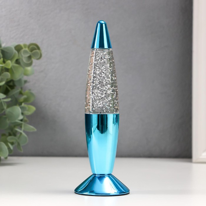 Светильник "Голубая ракета" LED, лава, блёстки, от батареек 3хLR44 19 см RISALUX