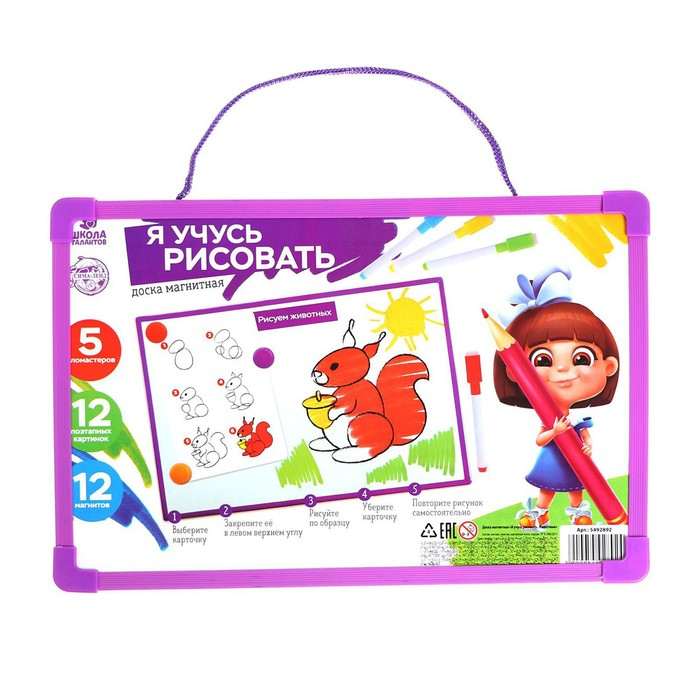 Магнитная маркерная доска «Я учусь рисовать. Животные»
