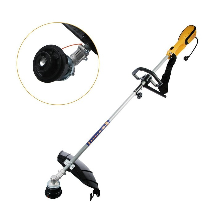В комплект входят леска и металлический нож, которые справятся с мягкой труднодоступной и высокой жёсткой травой.