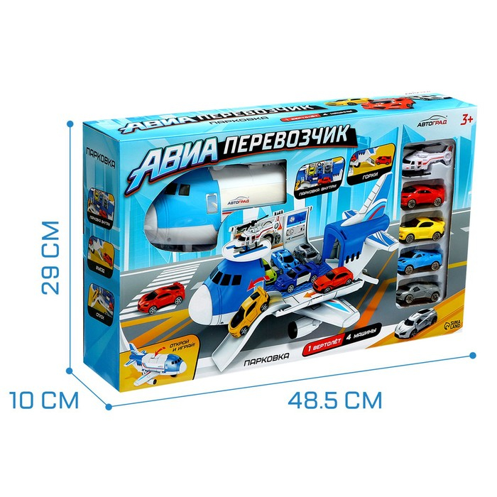 Самолёт - парковка «Авиабаза», с 4 машинками и вертолётом
