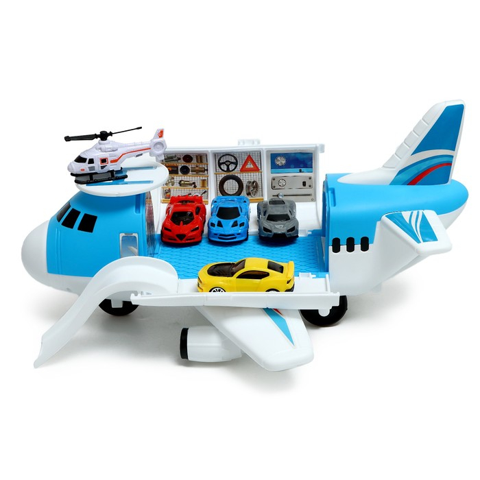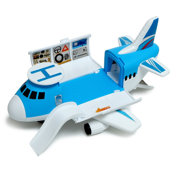 - В середине кабины самолёта расположен отсек для хранения вертолёта и машинок.