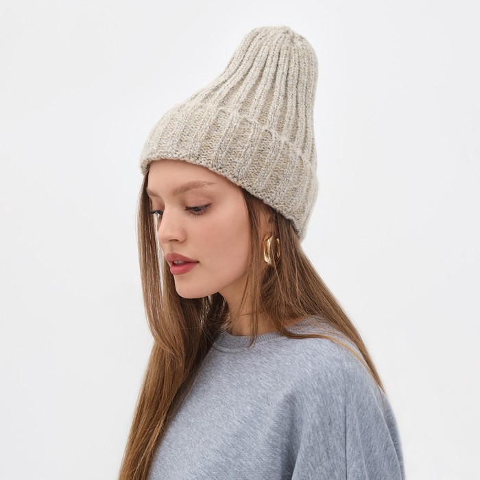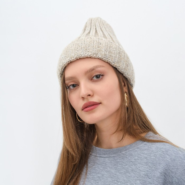Шапка женская MINAKU с подворотом, размер 54-56, цвет бежевый