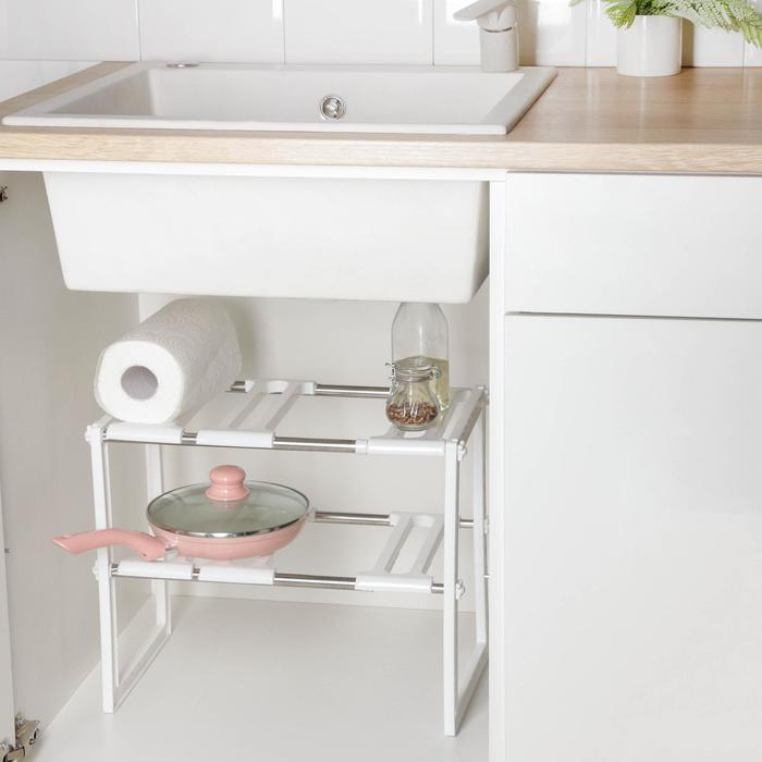 Полка под раковину раздвижная, 26×50(70)×38 см, цвет белый