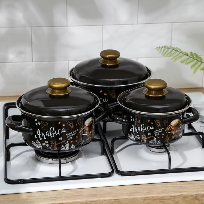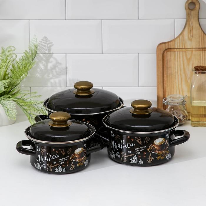 Набор эмалированных кастрюль «Арабика-1», 3 предмета: 1 л, 1,5 л, 2,3 л, индукция