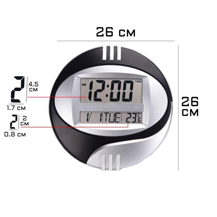 Часы-будильник электронные, настенные, настольные, 26 х 26 см, черные