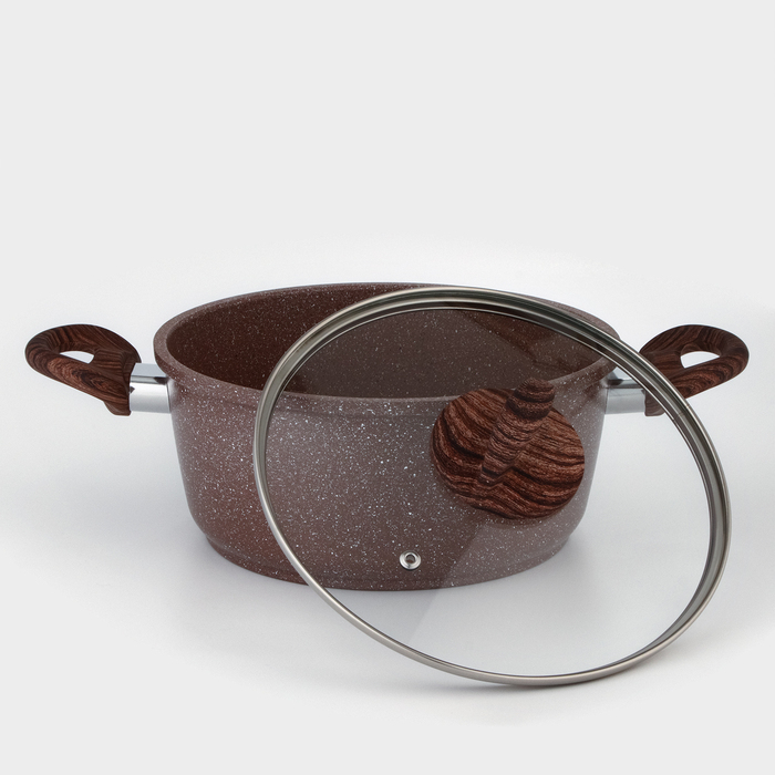 Кастрюля Доляна «Брауни», 3,3 л, d=24 см, h=10 см, стеклянная крышка, антипригарное покрытие, индукция