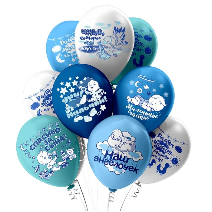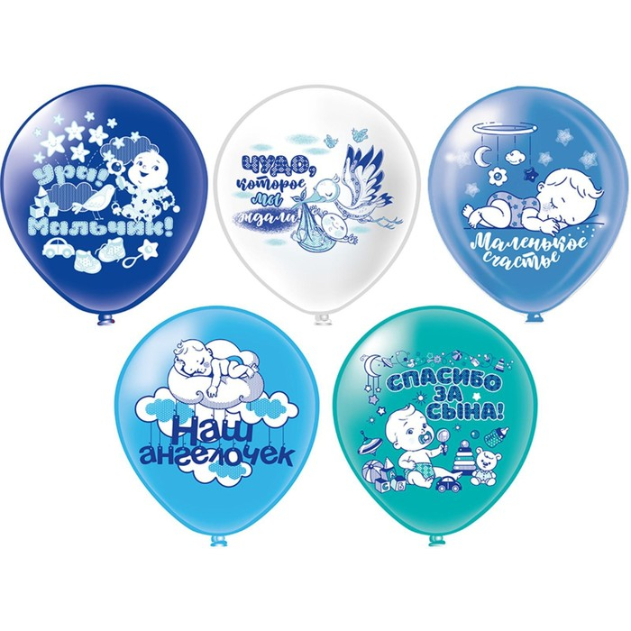 Шар латексный 12" «Новорождённые. Мальчик», шелкография, 2-сторонний, 5 дизайнов, набор 25 шт., МИКС
