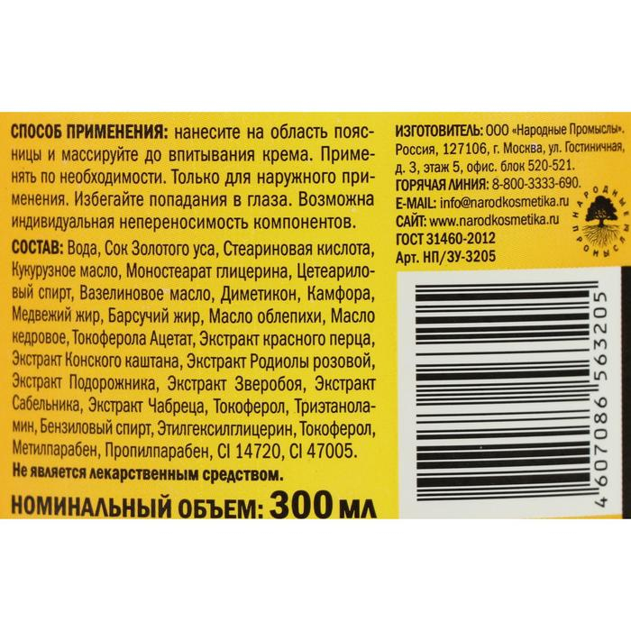Крем-снадобье с золотым усом, сабельником и медвежьим жиром, 300 мл
