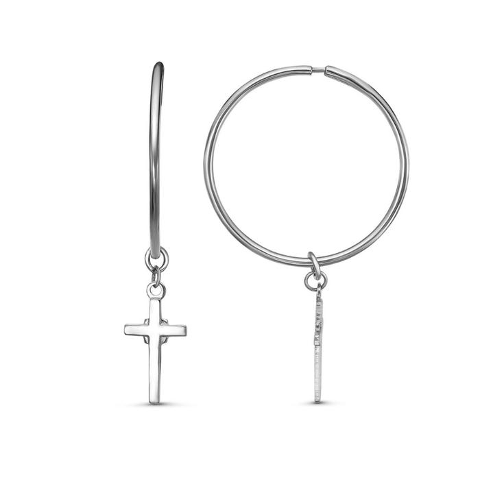 Серьги-кольца «Крестик», d=2,5 см, посеребрение