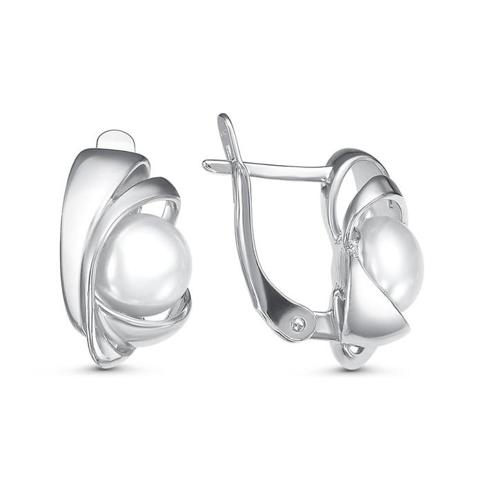 Серьги «Жемчуг» лента, посеребрение с оксидированием, цвет белый