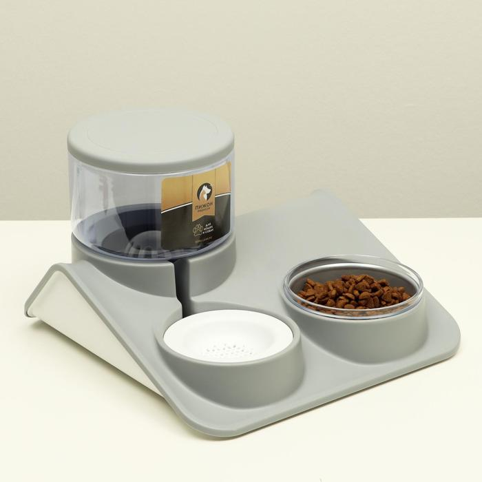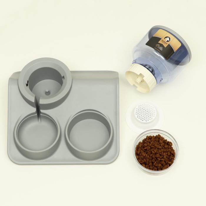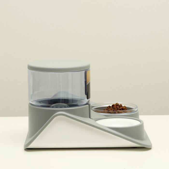 Комплекс для кормления с автопоилкой и съёмной миской, бело-серый