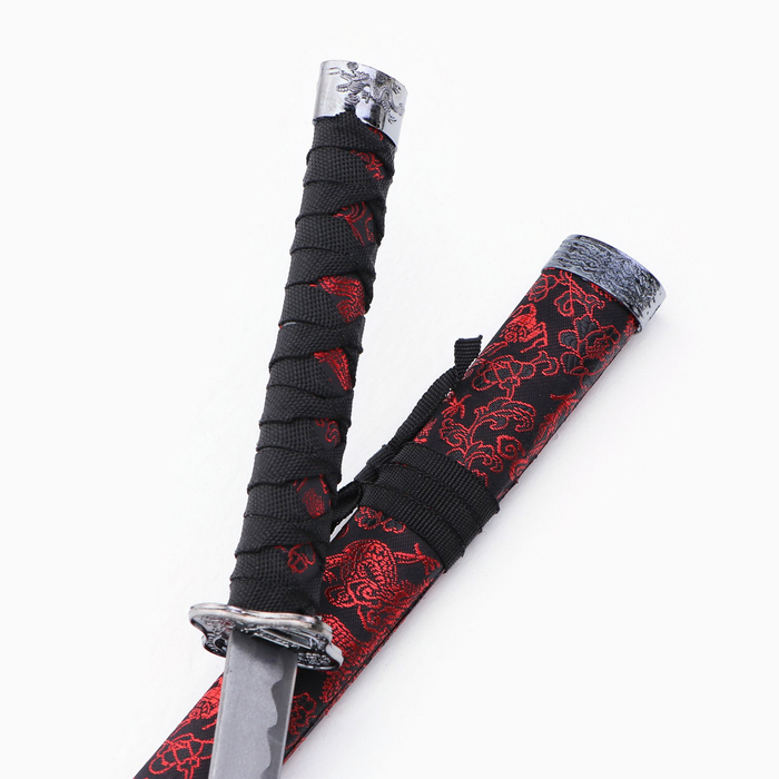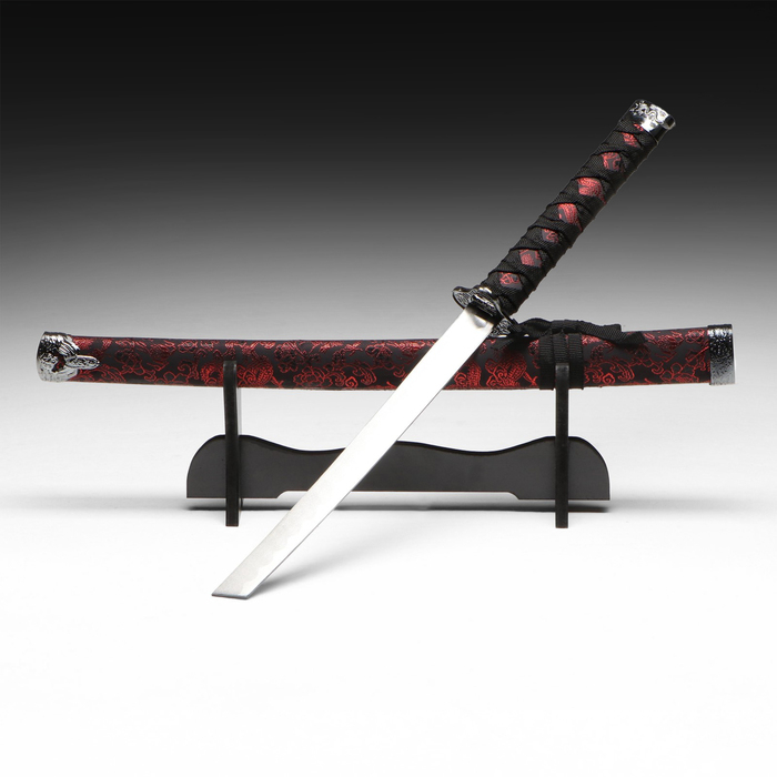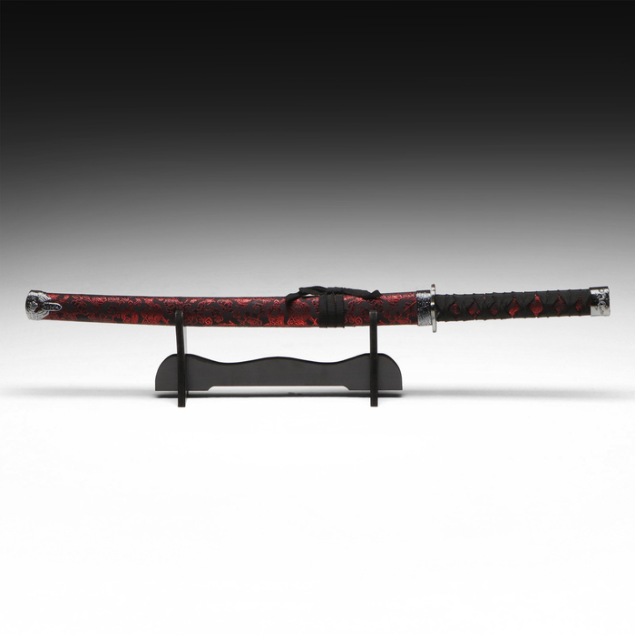 Сувенирное оружие «Катана на подставке», чёрные ножны с красным узором, 70см
