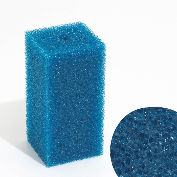 Губка прямоугольная для фильтра № 9, крупнопористая, 8 х 8 х 16 см, синяя