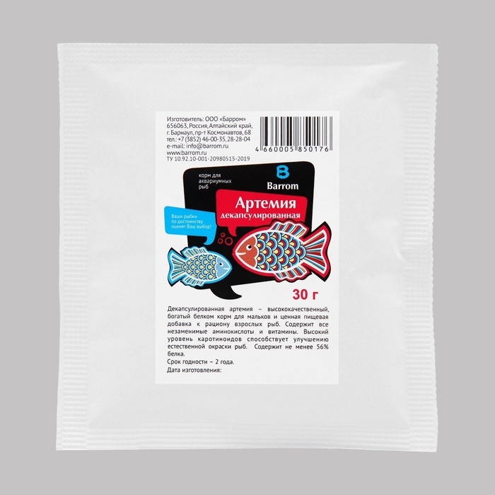 Корм для рыб Barrom артемия, декапсулированная, 30 г