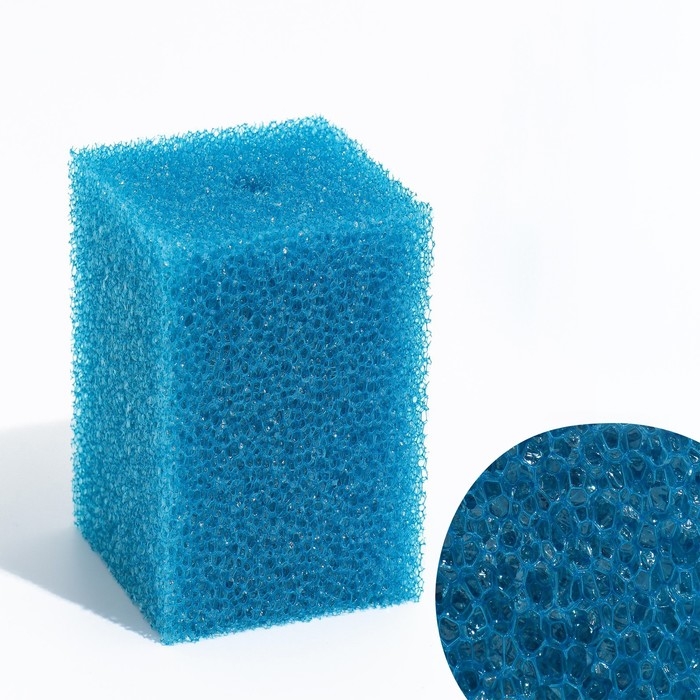 Губка прямоугольная для фильтра № 8, крупнопористая, 8 х 8 х 12 см, синяя