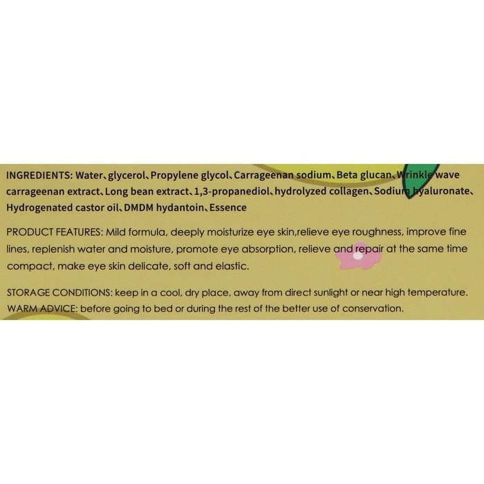 Состав: water, glycerol, propylene glycol, carrageenan sodium, beta glucan, wrinkle wave carrageenan extract, long bean extract, 1,3-propanediol, hydrolyzed collagen, sodium hyaluronate, hydrogenated castor oil, DMDM hydantoin, essence.