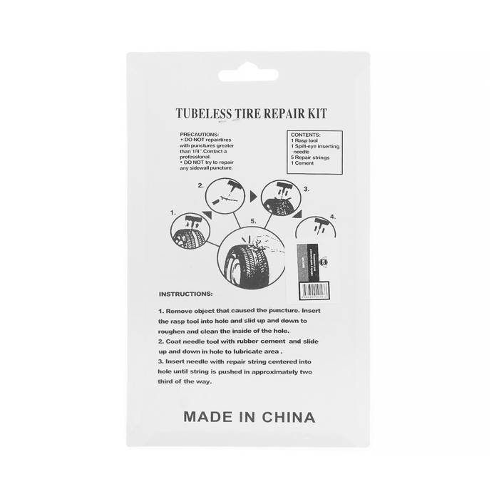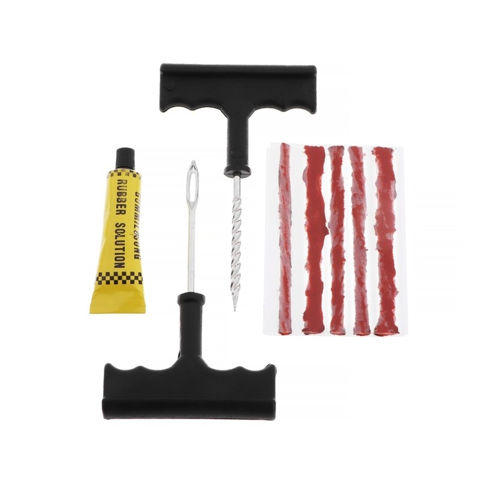 Абсолютно каждый водитель должен иметь в своем арсенале набор для ремонта бескамерных шин. Острый камень, стекло, гвоздь могут стать причиной больших проблем и потери времени. Набор поможет в экстренном восстановлении покрышек Вашего авто. Комплект для бескамерных шин предназначен для устранения прокола на бескамерной шине легкового авто, не снимая колеса с транспортного средства. Резиновые синтетические жгуты являются наиболее щадящими и высокотехнологичными. Они обеспечивают быстрый ремонт прокола (до 10 мм), также хорошо тянутся, отличаются эластичностью и высокой надежностью. Размер жгута составляет 6х100 мм. Инструменты для ремонта с усиленной конструкцией, такие как, шило и игла, изготовлены из прочных материалов, а рукоятка не скользит во время работы. Объем клея – 12 мл. Ремонт шины легкового автомобиля занимает около 10-15 минут. Благодаря использованию набора для ремонта бескамерных шин Вы без труда доберетесь до ближайшего автосервиса. Без сомнения, данный комплект - незаменимая вещь в машине, особенно при поездках на дальние расстояния. Он имеет небольшой размер и его удобно хранить даже в бардачке. Надежная упаковка блистер обеспечит целостность и сохранность набора.