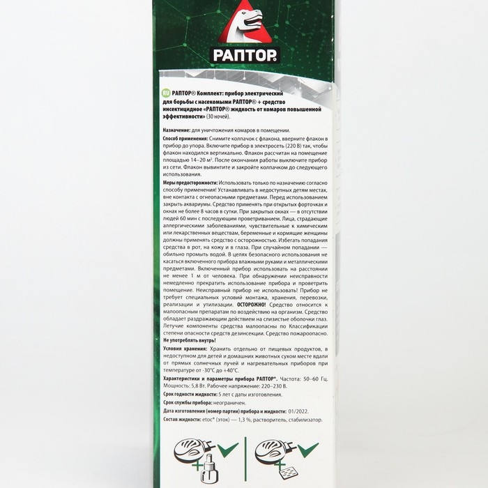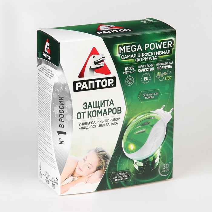 Набор фумигатор + жидкость от комаров, РАПТОР, повышенная эффективность, 45 ночей