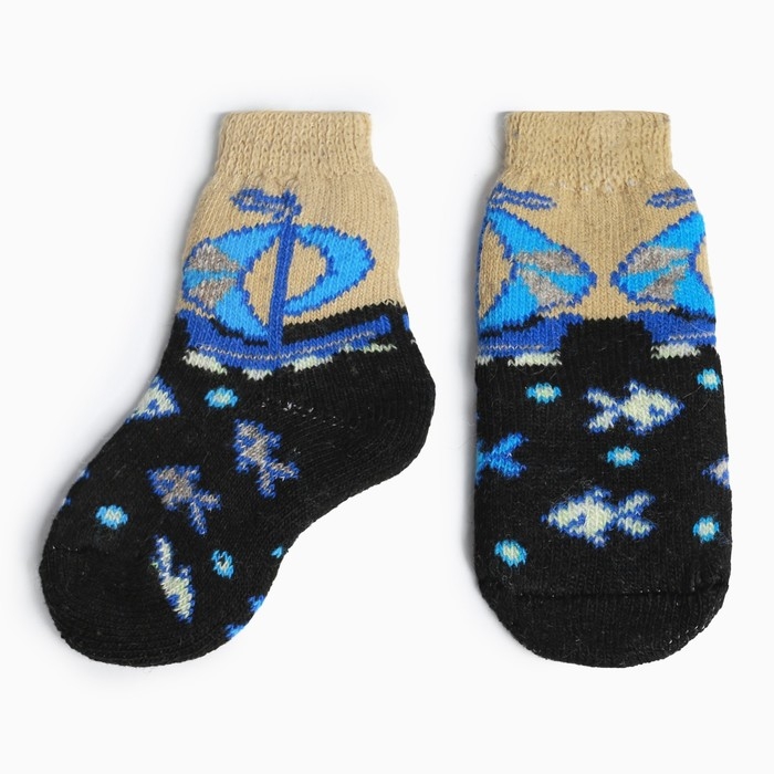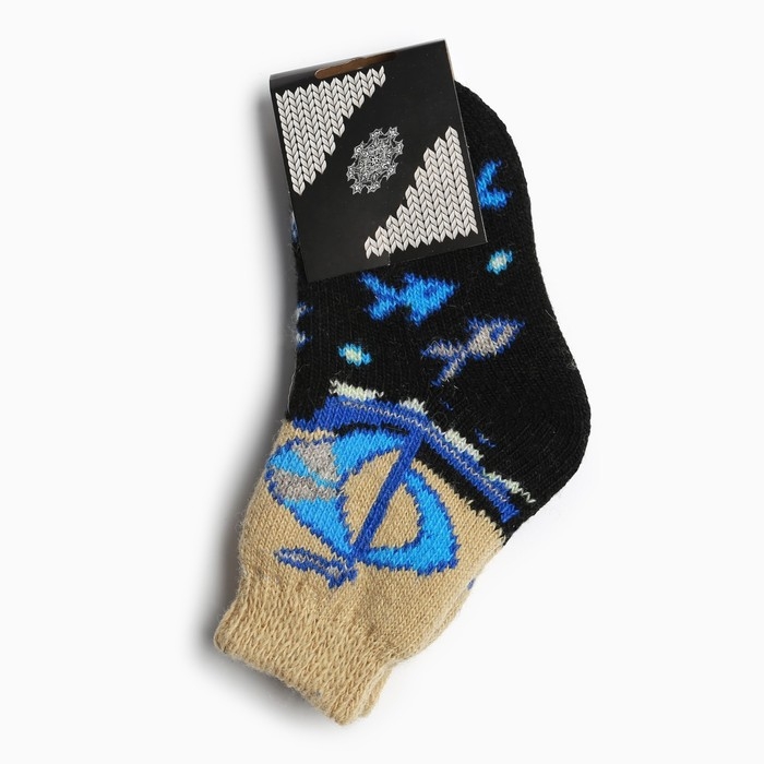 Носки детские шерстяные "Кораблик" А.3а45, цвет черный/бежевый, р-р 18