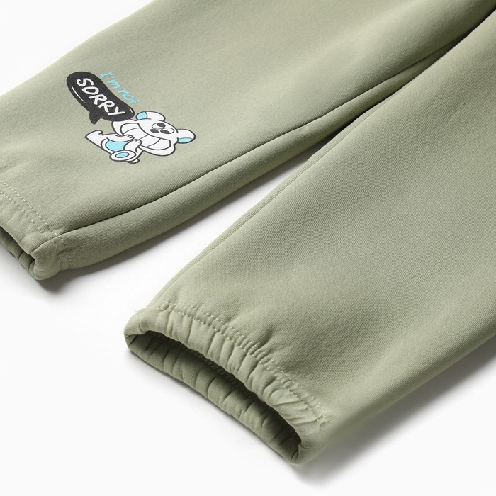 Брюки детские с начесом MINAKU: CRUSH, цвет оливковый, рост 134 см