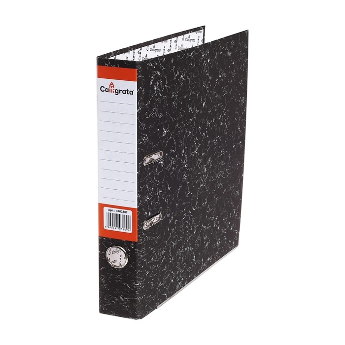 Папка-регистратор 50 мм, А4, Calligrata, эконом мрамор, нижний металлический кант, черная