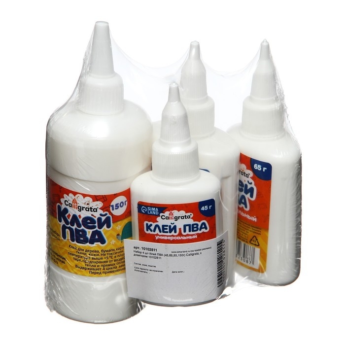 Клей ПВА Calligrata, с дозатором, набор из 4 шт по 45, 65, 85, 150 грамм