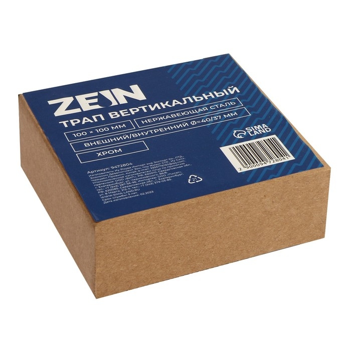 Трап ZEIN engr, 100х100 мм, вертикальный, внеш/внутр d=40/37 мм, нержав сталь, хром