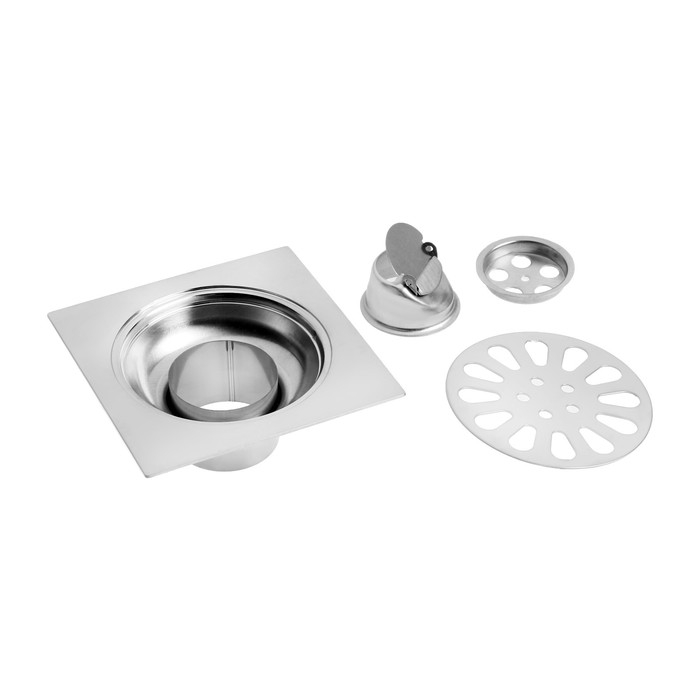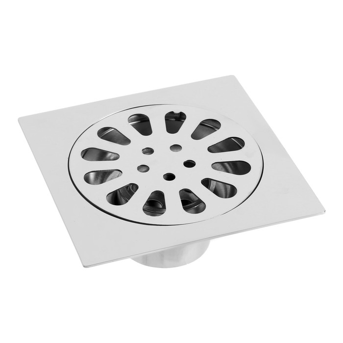 Трап ZEIN engr, 100х100 мм, вертикальный, с трубой, внеш/внутр d=40/37 мм, нержа сталь, хром
