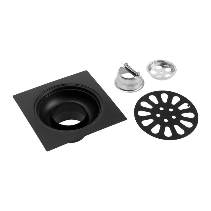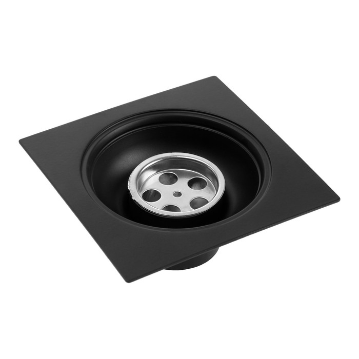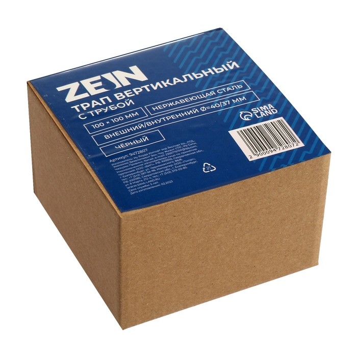 Трап ZEIN engr, 100х100 мм, вертикальный, с трубой, внеш/внут d=40/37 мм, нерж сталь, черный