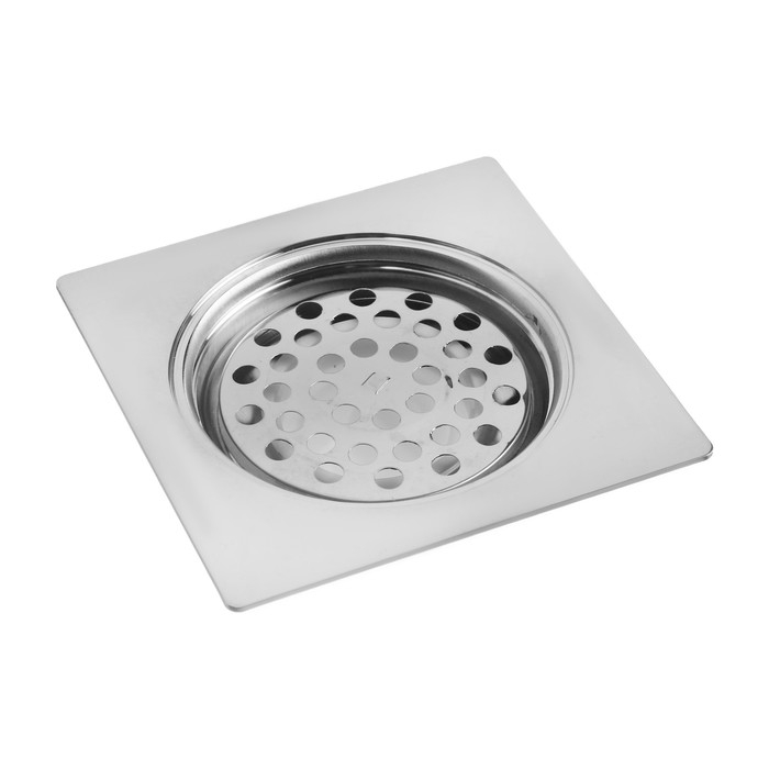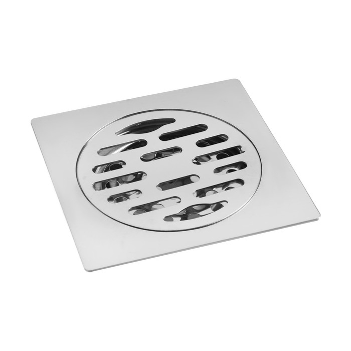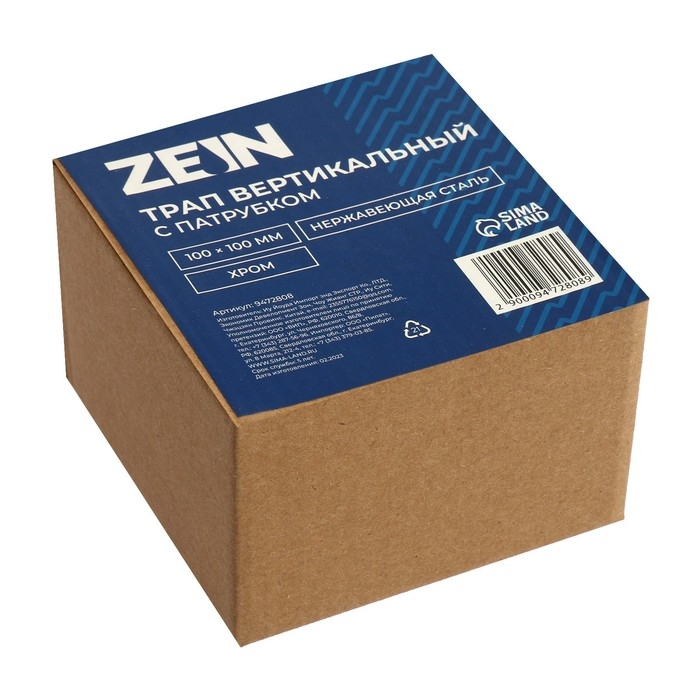 Трап ZEIN engr, 100х100 мм, вертикальный, с патрубком, нержавеющая сталь, хром