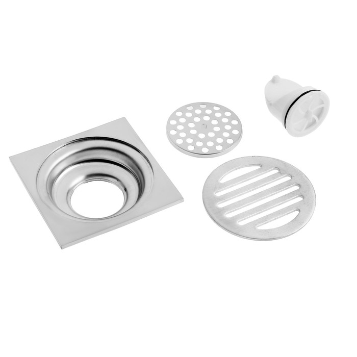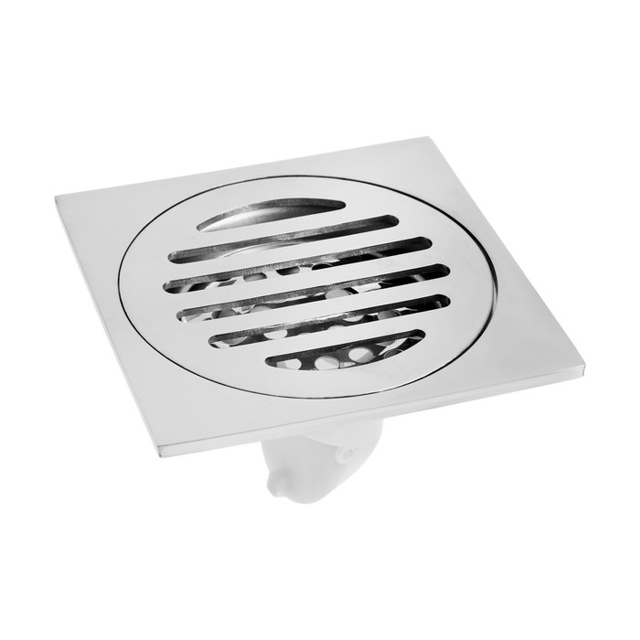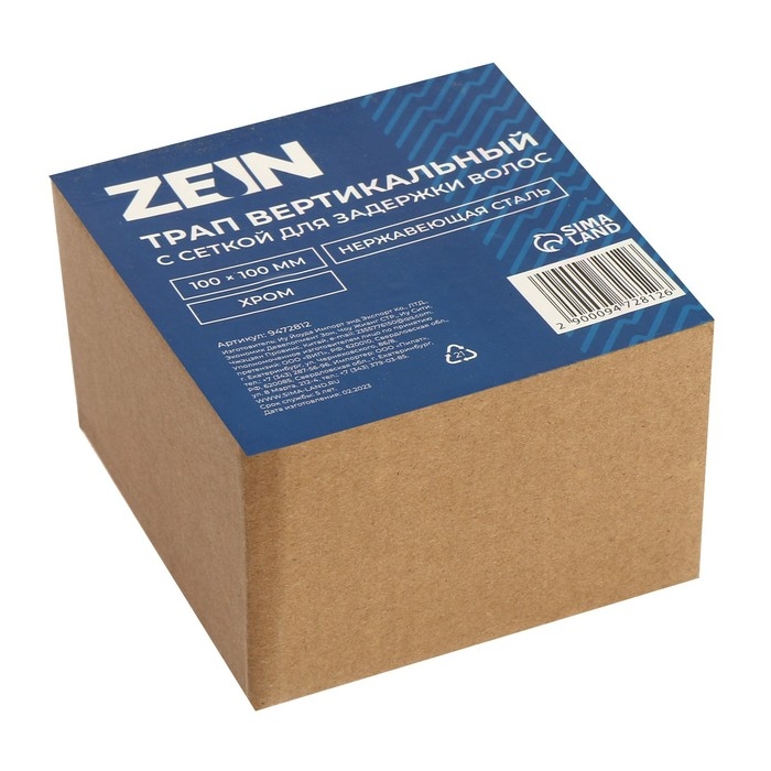 Трап ZEIN engr, 100х100 мм, вертикальный, с сеткой для задержки волос, нержав сталь, хром