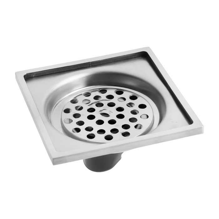 Трап ZEIN engr, 100х100 мм, вертикальный, d=40/50 мм, нержавеющая сталь, хром
