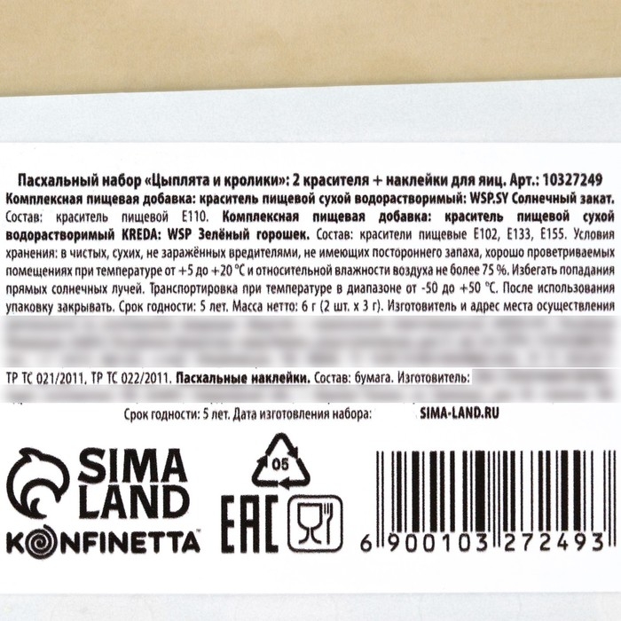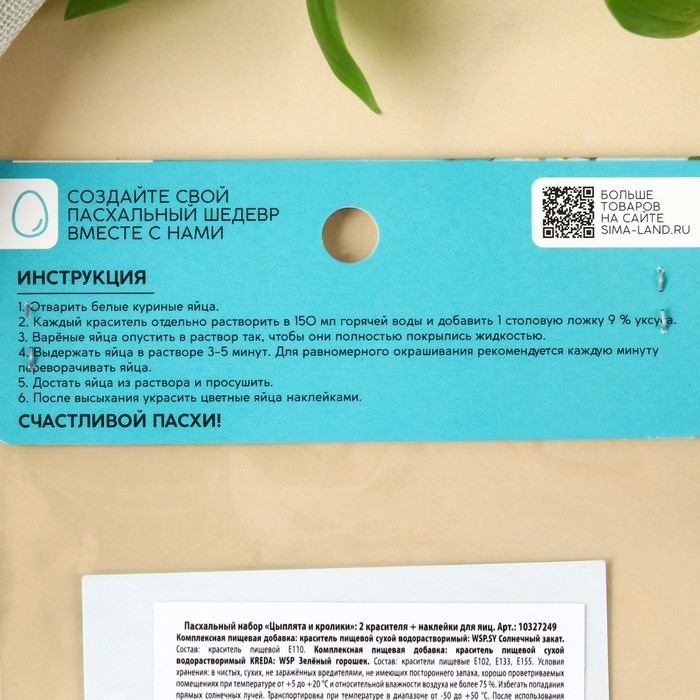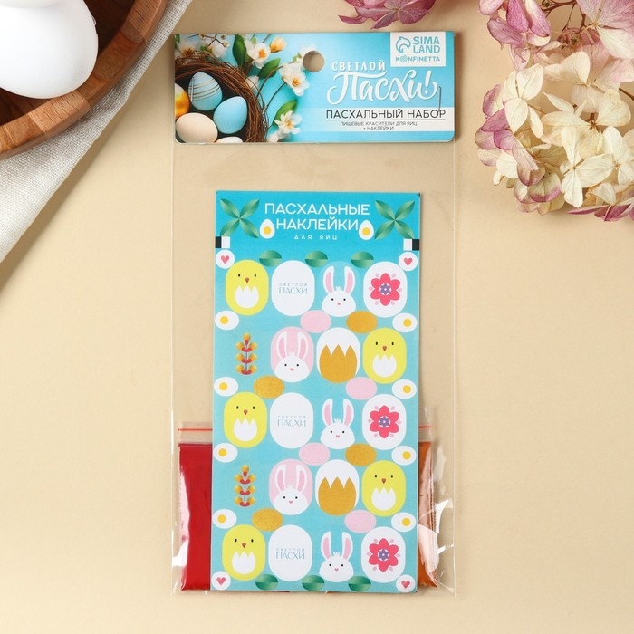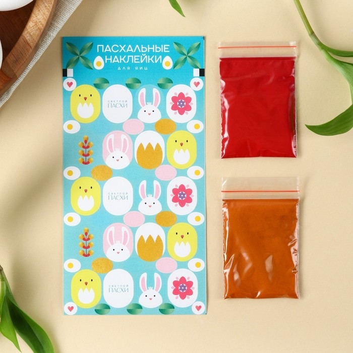 Пасхальный набор «Цыплята и кролики»: 2 красителя: оранжевый, зелёный + наклейки для яиц