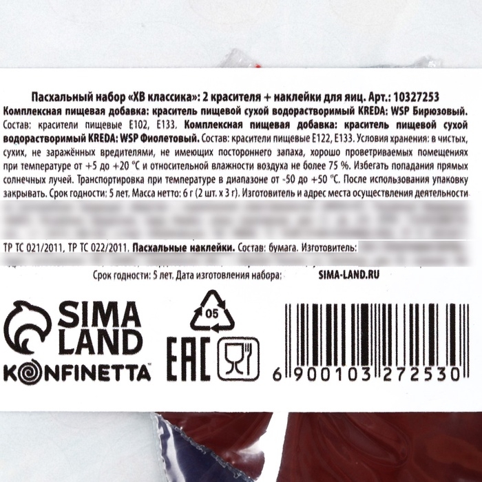 Пасхальный набор «ХВ Классика»: 2 красителя: бирюзовый, фиолетовый + наклейки для яиц