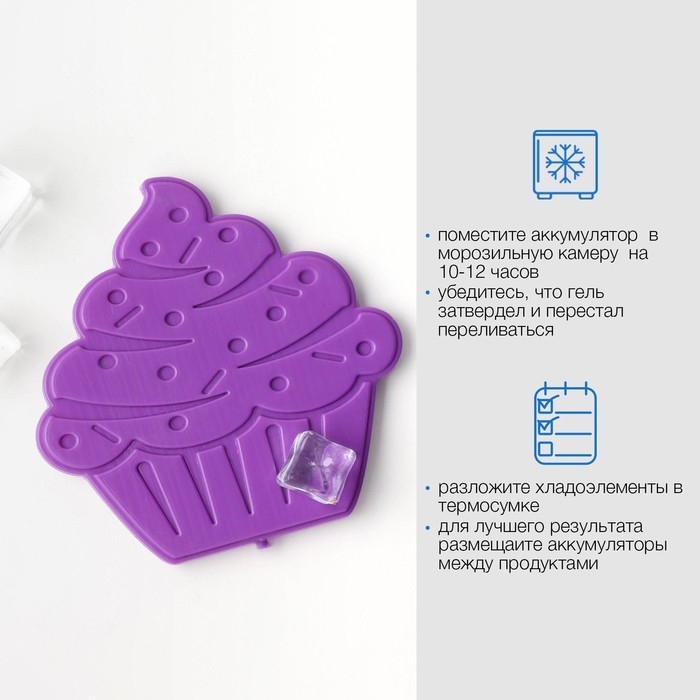 Маленький охладитель прост в использовании: достаточно поместить его в холодильник или морозилку на 8-12 часов. После этого терморегулятор разместить в термосумке, контейнере, сумке-холодильнике, термопакете или аптечке. Количество элементов, необходимых для охлаждения, зависит от объемов аксессуара. На каждые 10 литров необходимо использовать 300-500 мл охладителя.