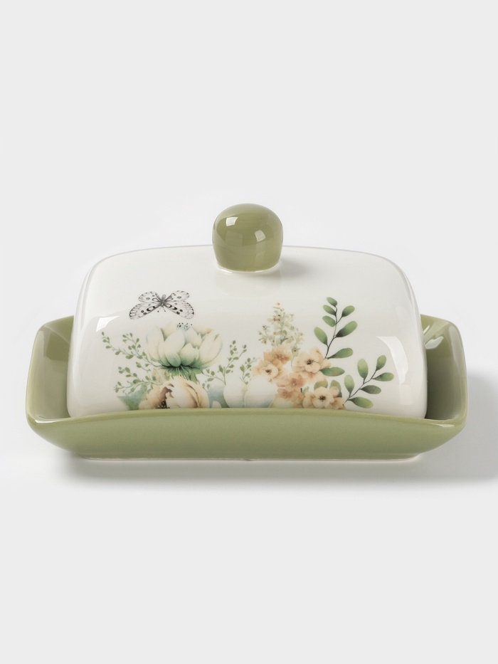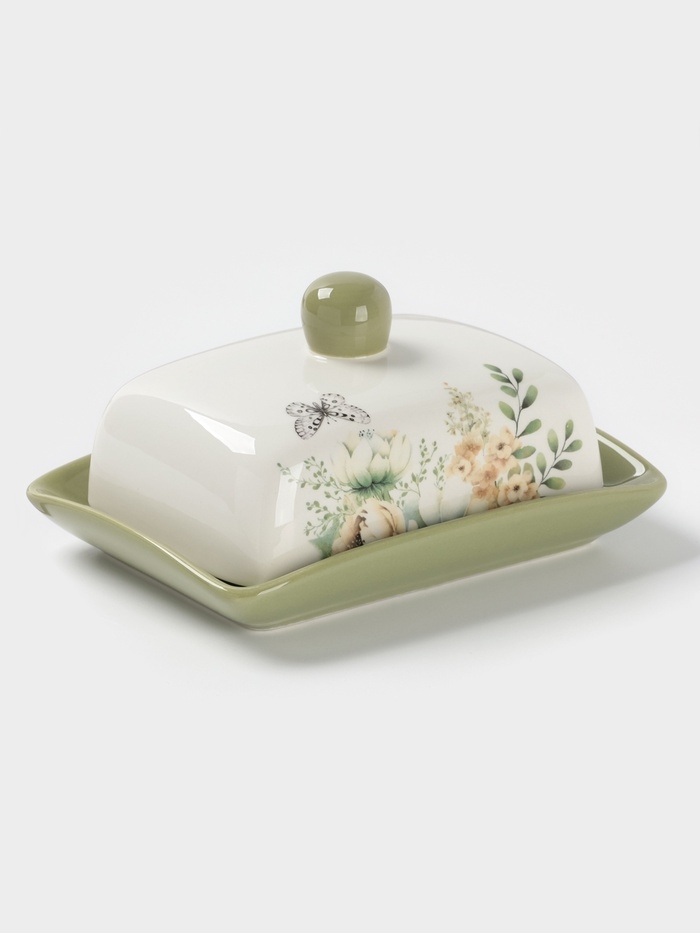 Масленка Доляна "Цветы" цвет белый 17х12х8,5 см