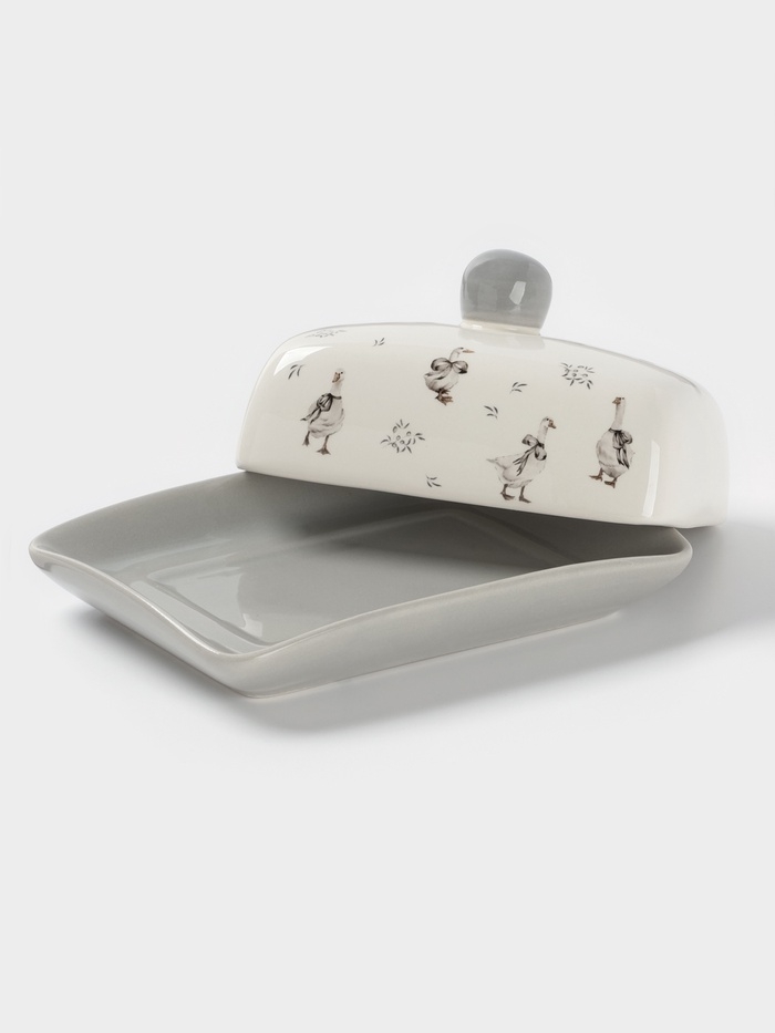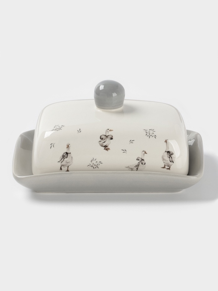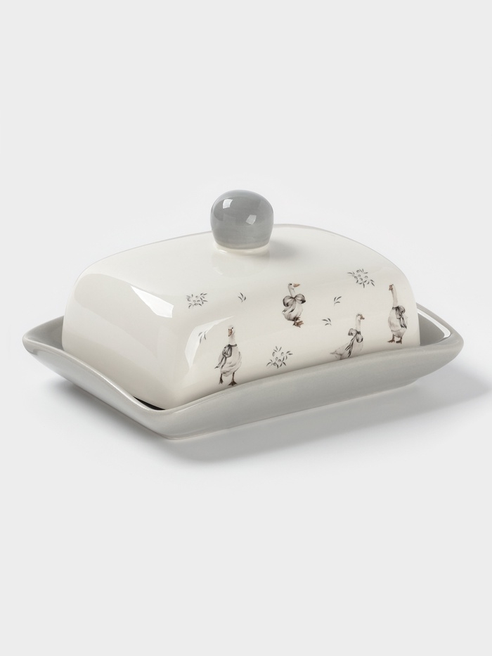Масленка Доляна "Гуси" цвет белый 17х12х8,5 см