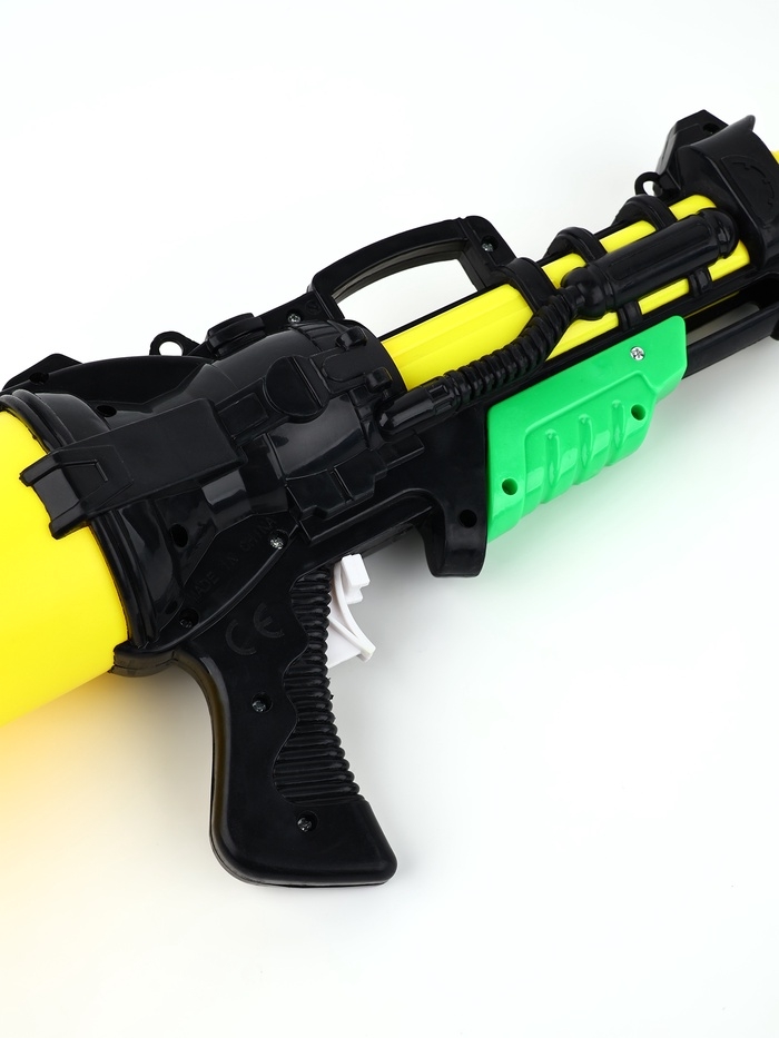 - Прочные материалы: бластер выполнен из надёжного пластика, устойчивого к воде и солнцу.