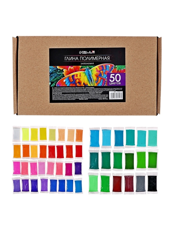 Набор глина полимерная запекаемая, 50 цветов по 20 г, с аксессуарами, в гофрокоробе
