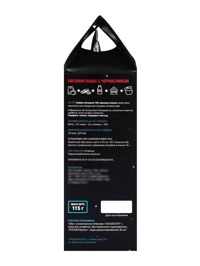 Космическое питание «Овсянная каша с черносливом», в тюбике, 115 г