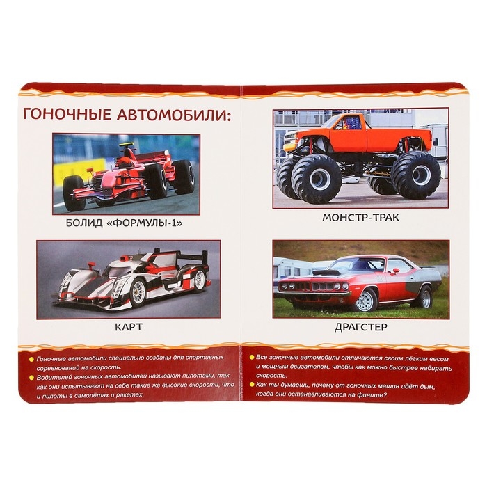 Эта книга — отличный подарок для увлечённых автомобилями детей! Крохе понравятся красочные изображения служебных, строительных, спортивных и других машин. Также на страницах можно найти много любопытных историй и подробностей.