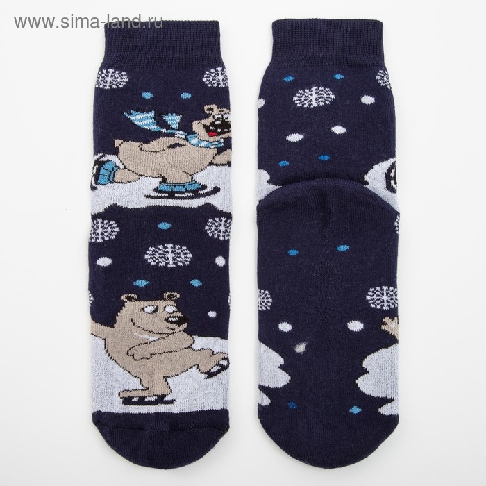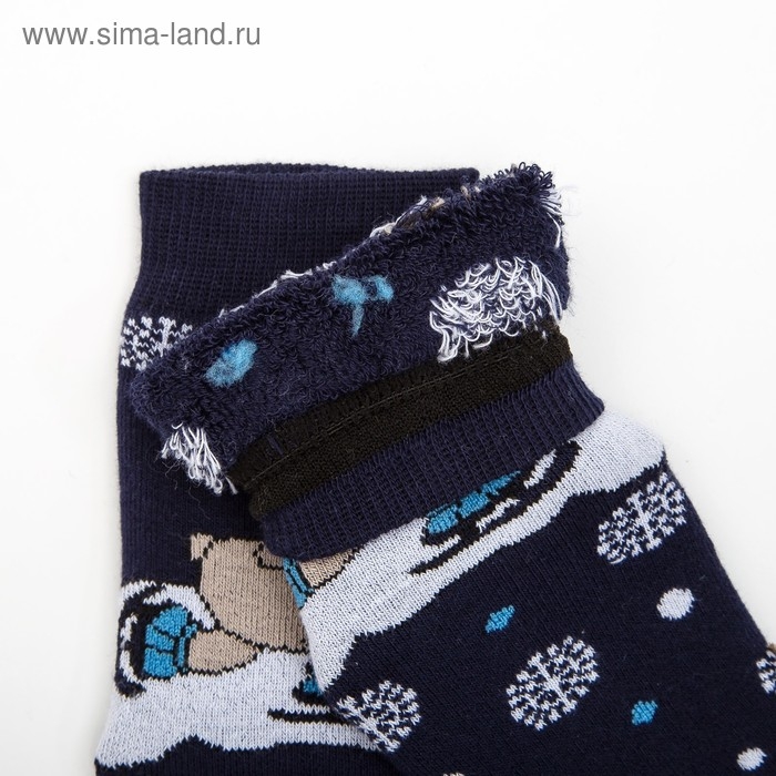 Носки детские новогодние махровые, цвет тёмно-синий, размер 20-22