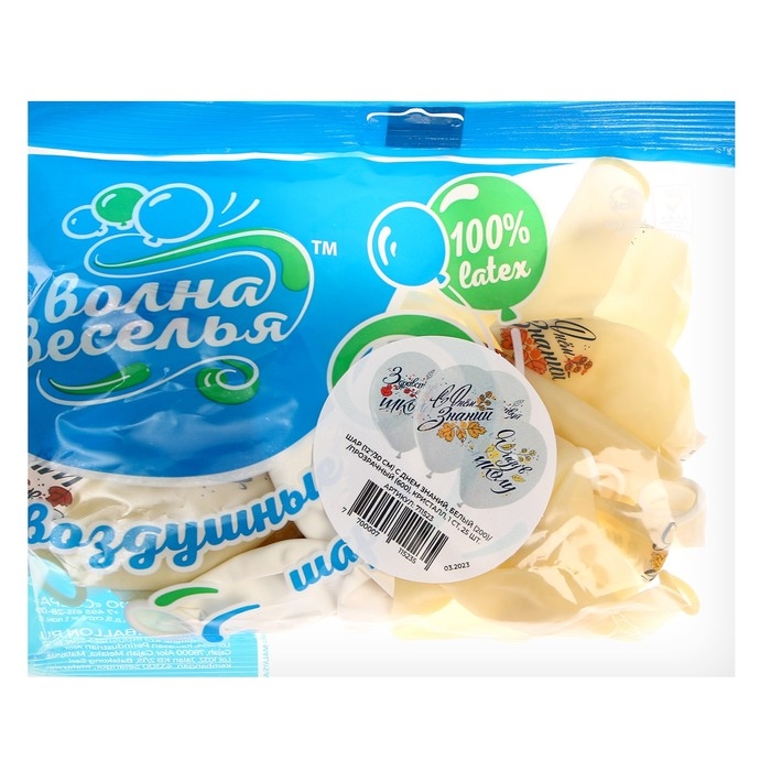 Шары воздушные латексные 12'' «С днём знаний», кристалл, 1-сторонний, набор 25 шт., белый/прозрачный