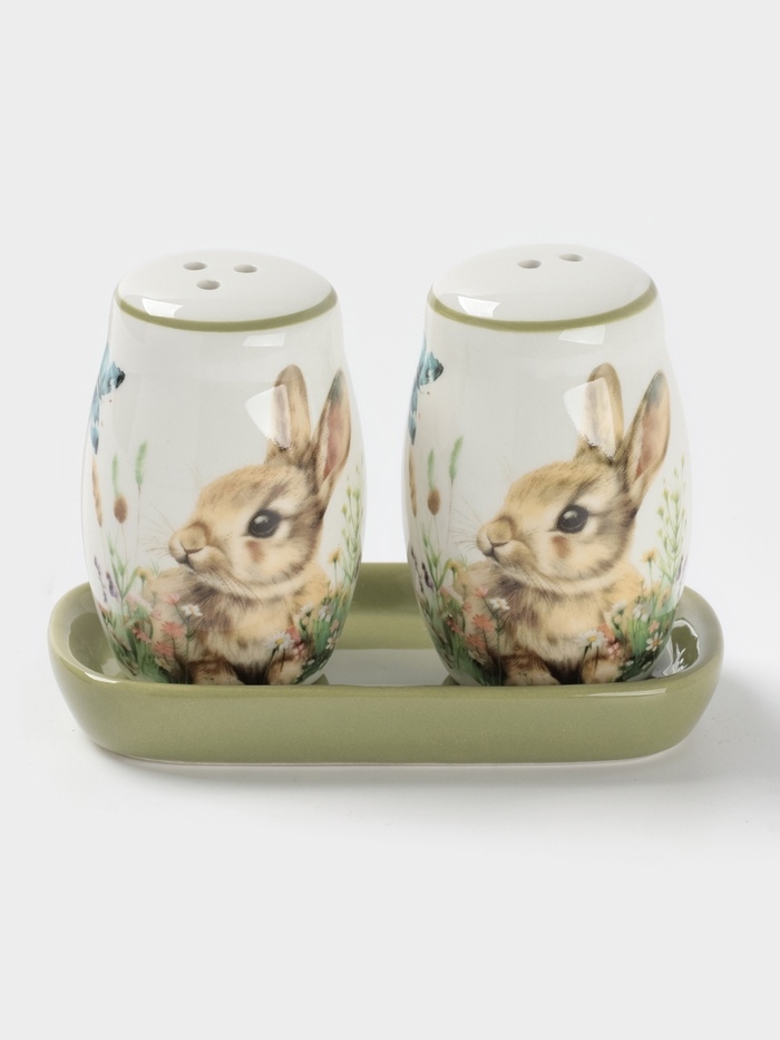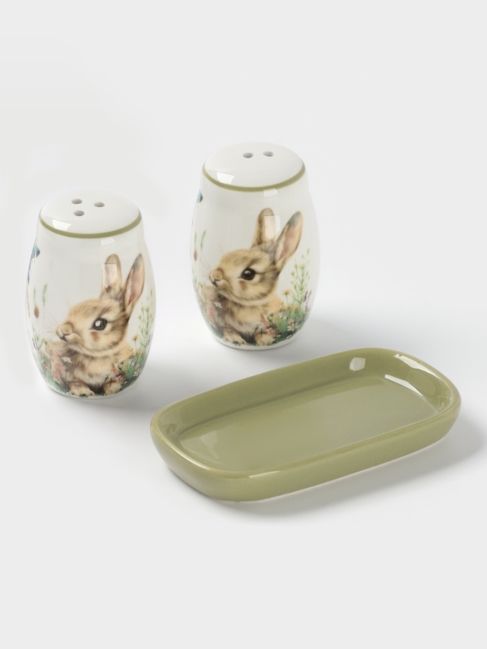 Набор для специй Доляна «Зайка», керамика, 2 предмета: солонка, перечница 130 мл, 11.5×6.2×8.8 см, белый