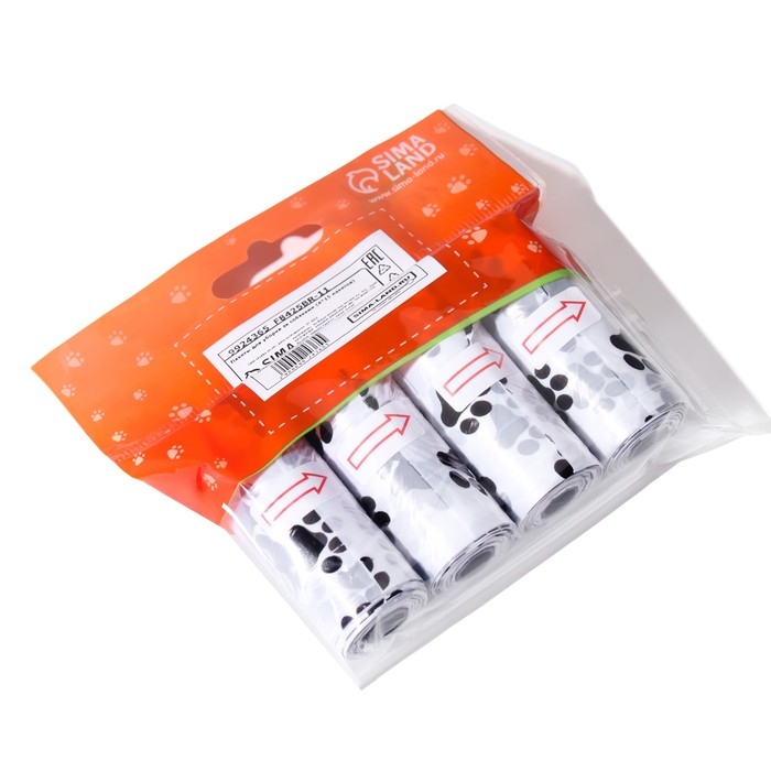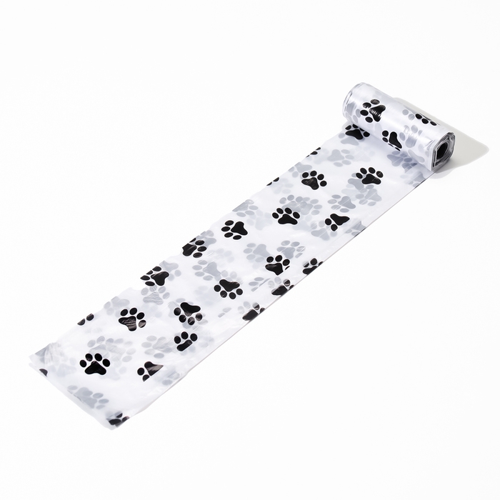 Представляем вам идеальное решение для поддержания чистоты на прогулке с вашим питомцем — пакеты для уборки за собаками с печатью Лапки (4 рулона по 15 пакетов 29х21 см), белый.