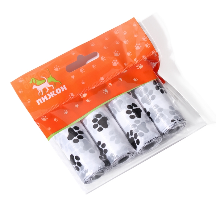 Пакеты для уборки за собаками с печатью (4 рулона по 15 пакетов 29х21 см), белый