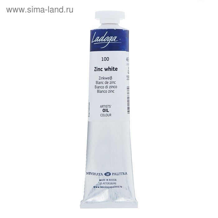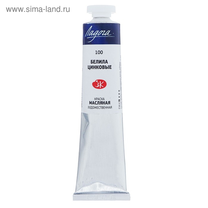 Краска масляная в тубе 46 мл, ЗХК "Ладога", белила цинковые, 1204100