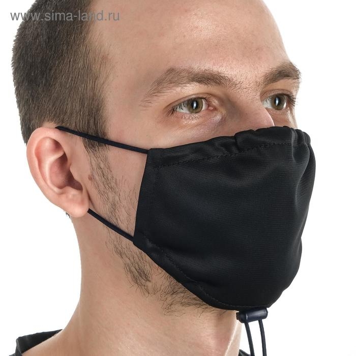 Маска тканевая, многоразовая, регулируемая, фасовка 2 шт, чёрная