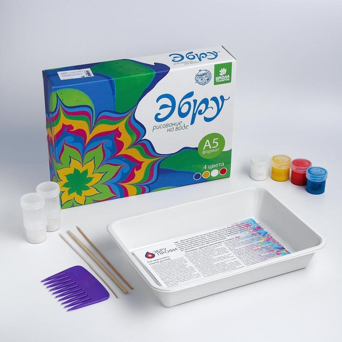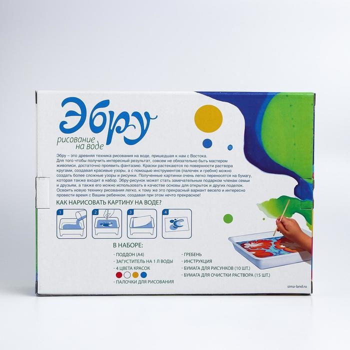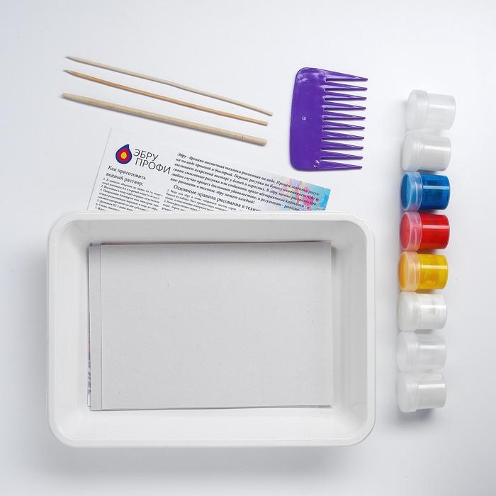 Набор для рисования эбру: краски 6 цв по 6 мл, 10 листов бумаги, загуститель 10 г, инструменты, поддон