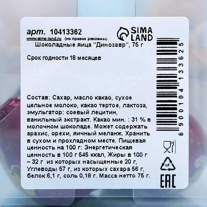 Яйца шоколадные "Динозавр", 75 г